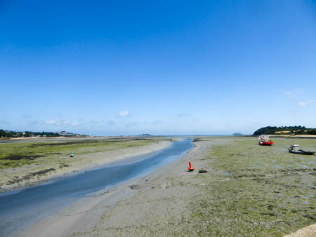 Quant à nous, c’est vers la jetée de Kernoa que nous portent nos pas. Du chenal d’entrée au port, il ne subsiste qu’un mince filet d’eau.