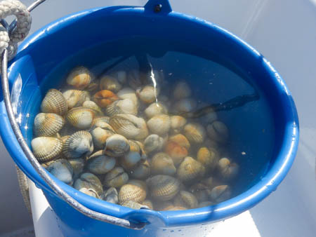 Pour profiter d’une forte marée basse (101) Marion et Pascal partent jusqu’à Kérity pour ramasser quelques coques dans l’anse de Cruckin. Comme c’est un peu loin du port, les trottinettes s’imposent !