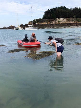 Enfin, les parents sont rentrés à pied pendant que les jeunes continuaient la visite. Pour les récupérer il a fallu approcher dans les algues : un peu périlleux, mais réussi !