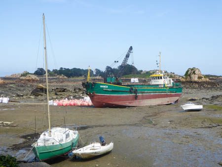 Nous découvrons pour la première fois la livraison par très grande quantité des matériaux utiles à l’île. Le déchargement commence dès que le cargo est posé et dure toute la marée.